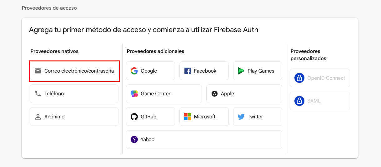 Activa Email/Password en Firebase