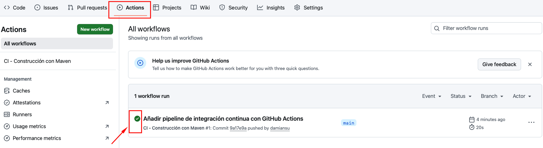 Integración continua mediante GitHub Actions