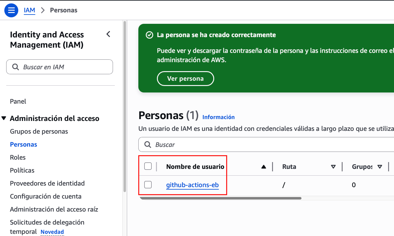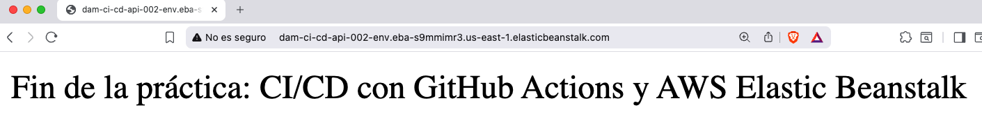 return "Fin de la práctica: CI/CD con GitHub Actions y AWS Elastic Beanstalk";
