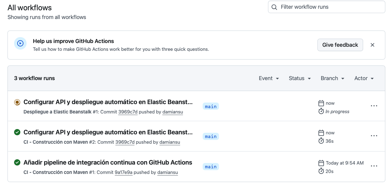 git commit -m "Configurar API y despliegue automático en Elastic Beanstalk"